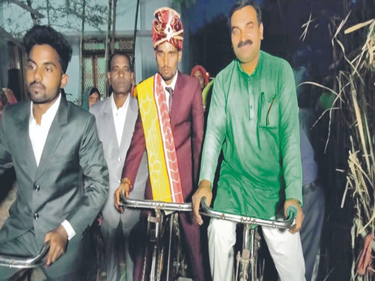 ऐसे हाईटेक समय में जब लग्जरी कार से बारात लेकर निकलना लोगों का शौक बन गया है, उसी दौर में डी-फार्मा डिग्री धारक दूल्हा साइकिल पर सवार होकर अपनी दुल्हनिया संग सात फेरे लेने निकल पड़ा। साइकिल से निकली बारात देखने के लिए लोगों की भीड़ जुट गई। दूल्हे ने फिजूल खर्ची रोकने और पर्यावरण संरक्षण का संदेश देने के लिए बारातियों से साइकिल लेकर आने के लिए पहले ही बोल दिया था।